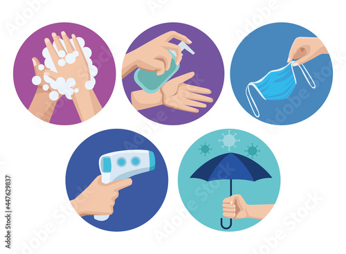 Menstruation not taboo vector. Female health poster with hands holding tampon, pads, hygienic napkin, panty, pills and contraceptives