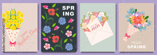 Merry christmas and happy new year greeting cards template. Vector set of winter holiday illustrations in vintage style. Christmas tree and toys. 2023 new year hand drawn poster.