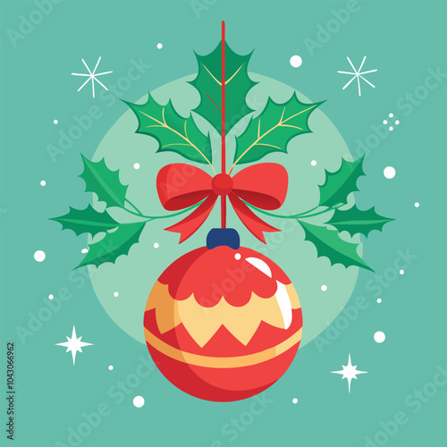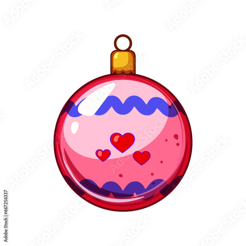 Layered paper cut Christmas tree ball with winter night landscape, reindeer family inside and holly berry, vector isolated illustration. Merry Christmas Happy New Year composition in paper art style.
