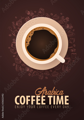 Coffee cup in shape of Christmas tree bauble, vector illustration. Merry Christmas card design template.