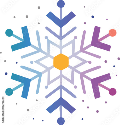 Merry Christmas greeting card vector template. Layered paper cut colorful snowflake and Merry Christmas hand lettering.