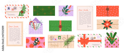 Merry Christmas greeting cards template design isolated set. Xmas festive web banner, social media cover, print with congratulation headline and eve pattern vector illustration