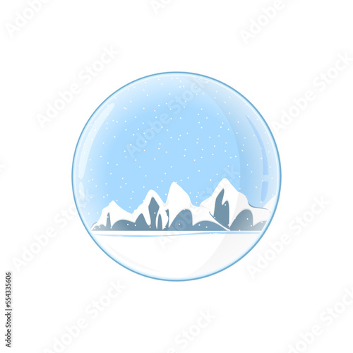 Merry Christmas Happy New Year greeting card template, vector illustration in paper art modern craft style. Decorative frame with paper cut snowflakes, winter forest landscape and reindeer family.