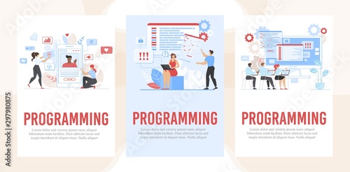 Messaging website and mobile app onboarding screens. Menu banner vector template for web site and application development. Text, voice and video chat, photo sending, group chat features.