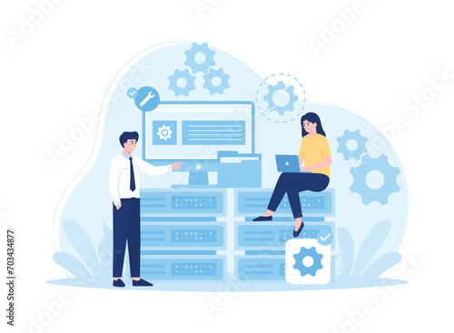 Foundry, steel casting factory with workers male characters holding ladle for casting, pushing cart with cardboard boxes, vector illustration. Metal industry concept for web banner, website page etc.