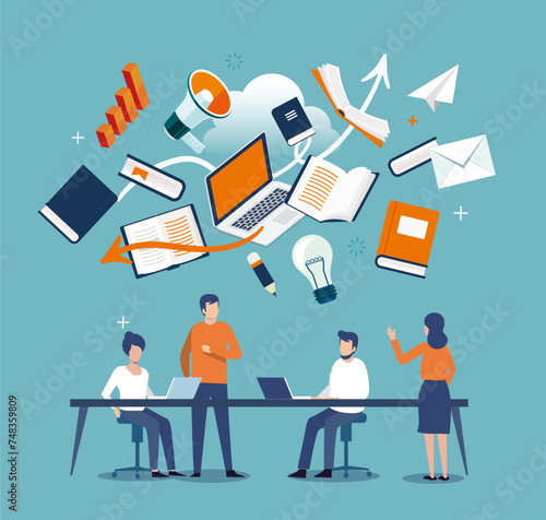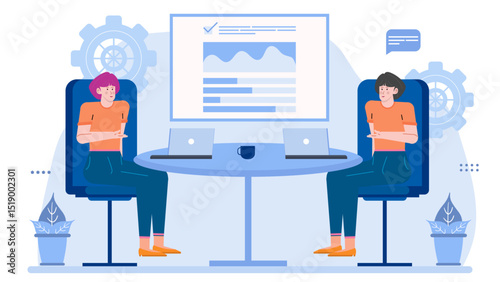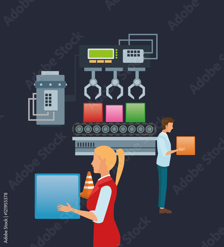 Metal casting process with workers, conveyor belt and robotic arm, vector illustration. Foundry, metalworking, metal production concept for web banner, website page etc.
