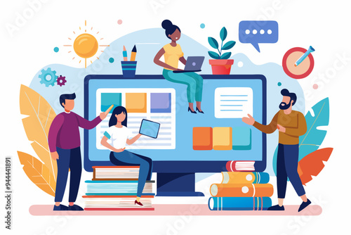 Metaverse concept. People isolated scene vector set. Men and women in VR headset using cyberspace for work, playing game, study and science illustration