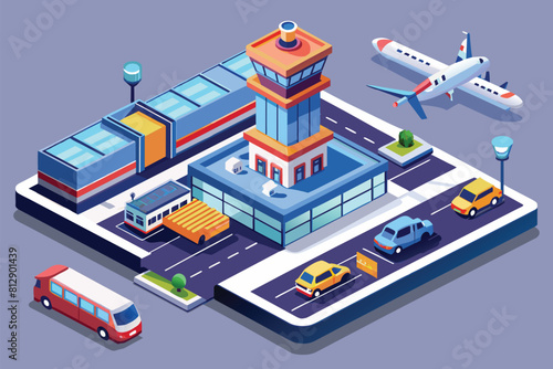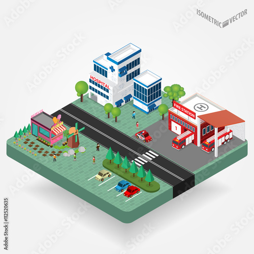 Metro station, flat vector illustration. Isometric city street cross section with subway entrance, train, tunnel, railway platform, escalator, entrance gate, ticket machine, information stand.