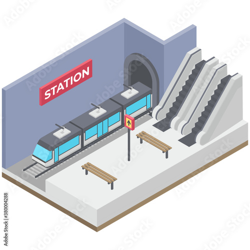 Metro underground station entrance vector. Isometric subway tunnel illustration. Railroad line part. Perspective isolated on white background