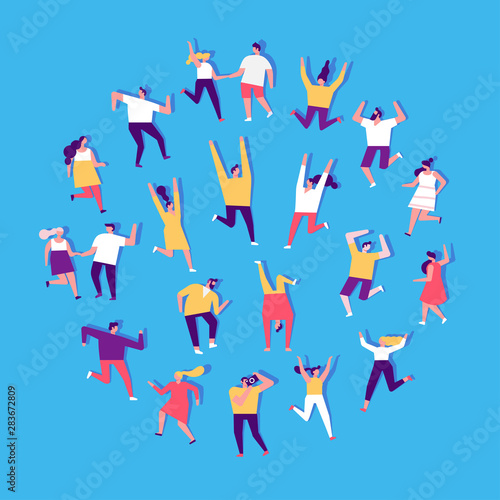Military orchestra children character marching playing music instrument. Festive parade of cute kids band performing with drum, brass horn, trombone and flute walking isolated on white background