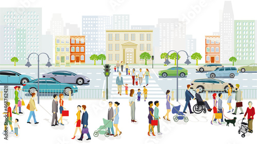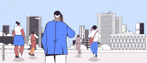 War and military invasion concept. Vector soldier in uniform aiming rifle at family refugee illustration. Bombing city background