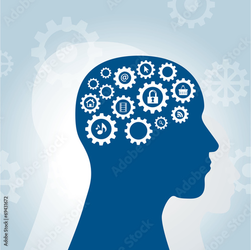 Man head silhouette with gears, cogwheels and light bulb, vector illustration in paper art style. Psychology, man mind, brain power, new idea concept for web banner, website page etc.