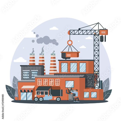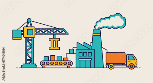 Coal mining industry vector illustration. Fossil fuel soil pile transportation on trolley cart wagon through railway. Charcoal extraction in mine. Black mineral resource industrial manufacturing