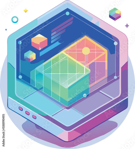 Mobile analytics concept flat vector illustration. Isometric smartphone screens with charts and graphs. Users interaction with mobile sites and applications.