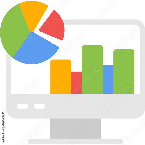 Mobile analytics concept flat vector illustration. Isometric smartphone with color pie chart and bar graph on screen. Users interaction with mobile sites and applications.
