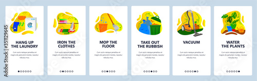Mobile app onboarding screens. Fire fighting station, man firefighter, alarm signal, no smoking sign, flammable stuff. Menu vector banner template for website and mobile development. Web site design flat illustration.