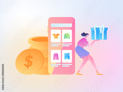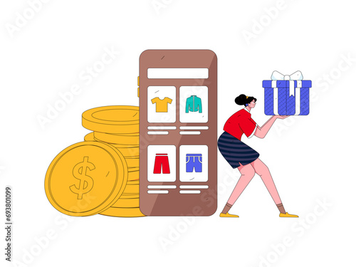 Mobile casino slot machine app vector icon. People playing jackpot 777 fortune game isolated on white background