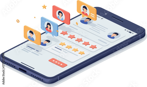 Mobile ice hockey, flat vector illustration. Isometric hockey rink, players and scoreboard on smartphone screen. Online sport game competition.