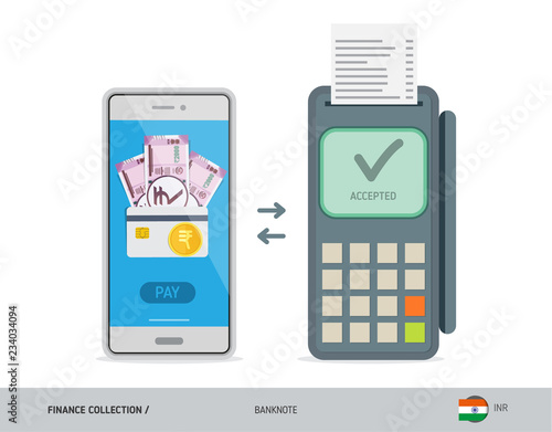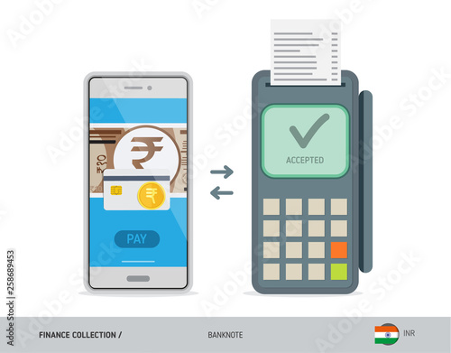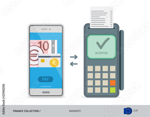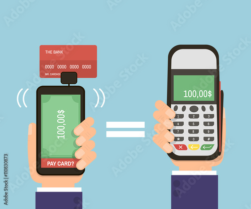Mobile payments with smartphone. Near field communication payment terminal concept. Online transactions, paypass and NFC. Cartoon flat style vector illustration.