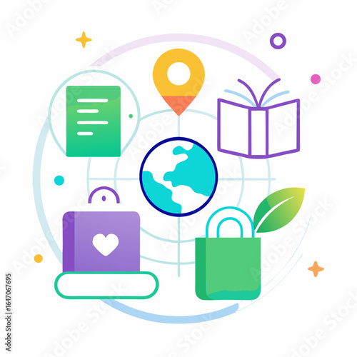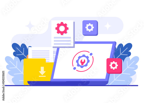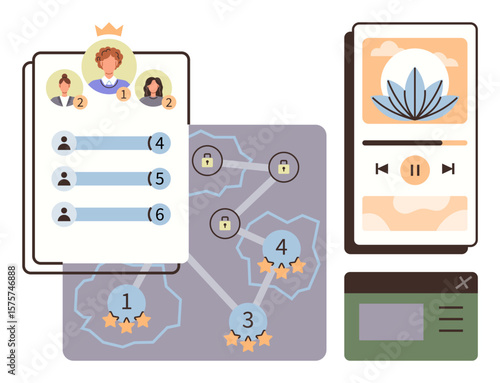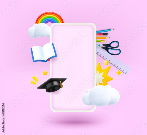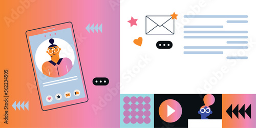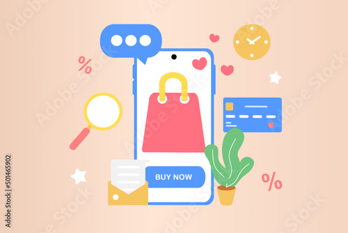 Mobile phone with speech bubble, charts, star rating, email, wifi signs, flat vector illustration. Multimedia communication device used for calling, messaging, chatting on social networks etc.