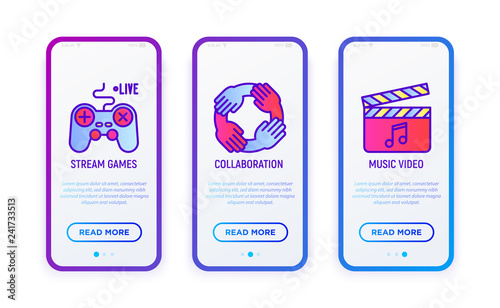 Mobile phone repair and maintenance service, broken screen replacement. Mobile app onboarding screens. Vector banner template for website and mobile development. Web site and UI design illustration.