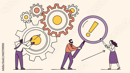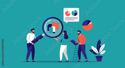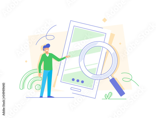 Mobile phone repair service, vector flat style design illustration. Tiny people professional technicians repairing shattered screen of big smartphone. Cell phone fix and maintenance service concept.