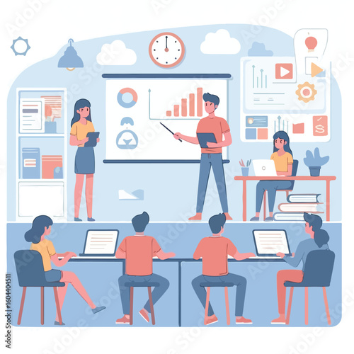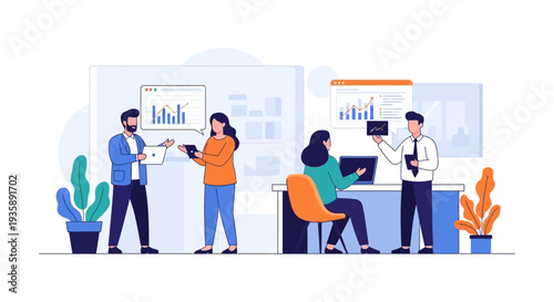 Mobile service center, vector flat illustration. Phone and electronics repair shop concept with characters for poster, web banner, website page etc.