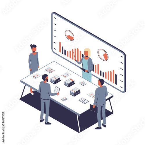 Mobile soccer, flat vector isometric illustration. Football fans watching match and supporting favorite team online. Football field, winner team with trophy celebrating victory on smartphone screen.