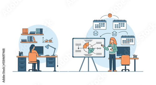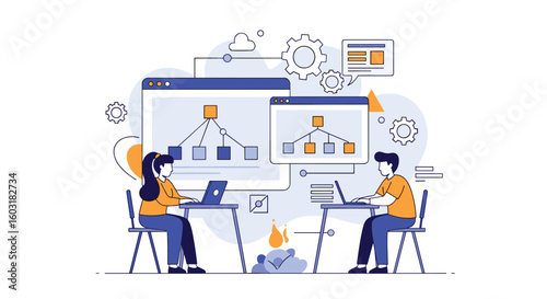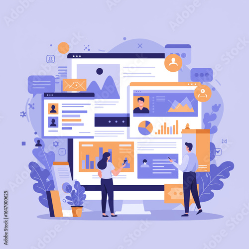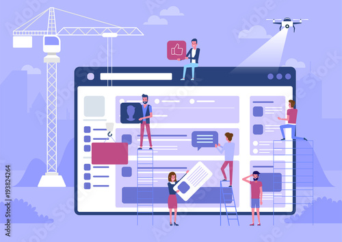 Mobile website development services vector illustration. Web development and design business concept for web banner, website page, presentation etc.