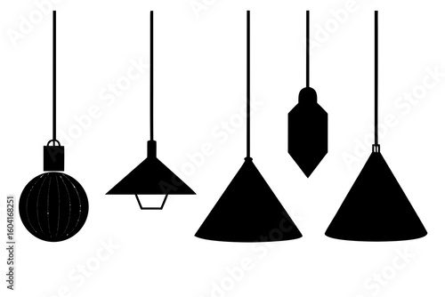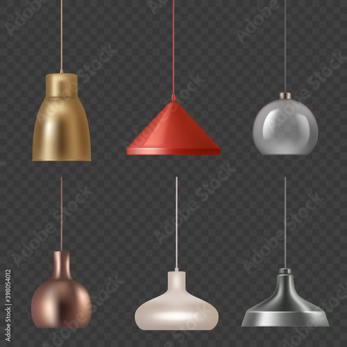 Modern black ceiling lamp ceiling luminaire set. Vector realistic isolated illustration of pendant ceiling lights.