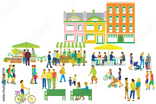 Vector illustration of people walking in the street and making use of various gadgets. Modern gadgets for daily life concept design element in flat style.