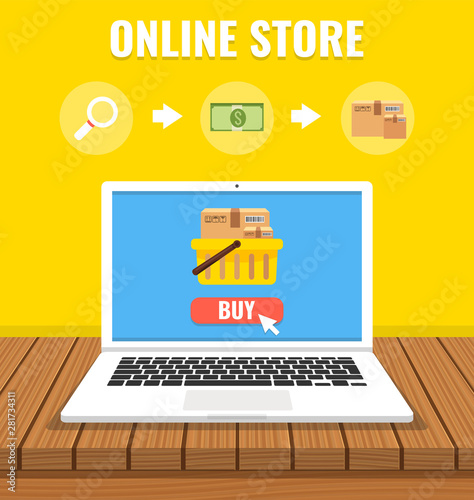 Modern gadgets vector flat illustration. Laptop, mobile phone, headphones, music player, smart watch. Fashionable electronic devices and new wearable technology poster, banner.