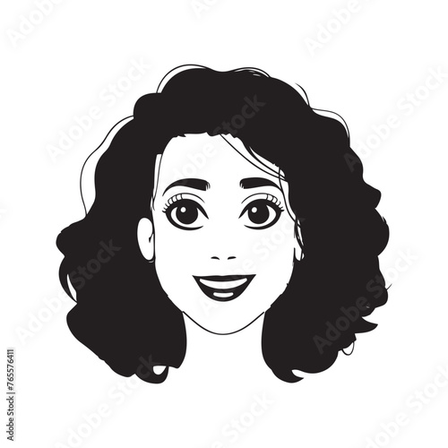 Vector portrait of young pretty woman smiling and holding white handbag in shape of heart in her hand. Young beautiful girl with swarthy skin and dark hairs smiling before party
