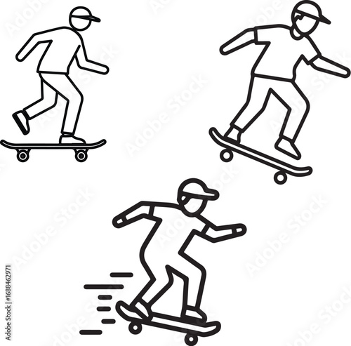 Modern urban teenage boys and girls on skateboard vector illustration. Set of isolated cartoon characters. City skaters have fun and do stunt and tricks. Skate extreme sport.