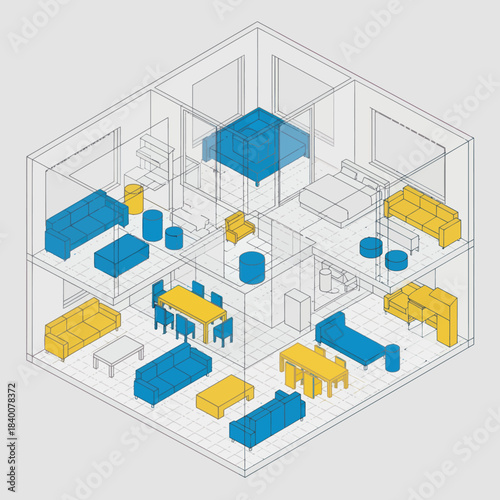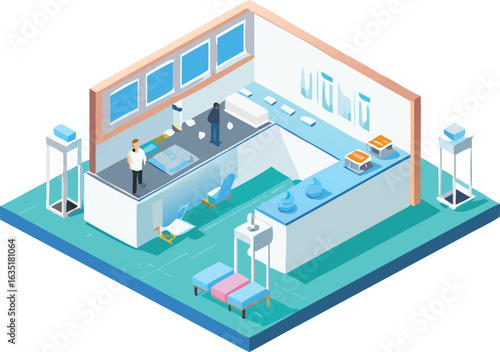 Villa house with pool isometric vector Modern loft cottage building architecture exterior isolated on white background
