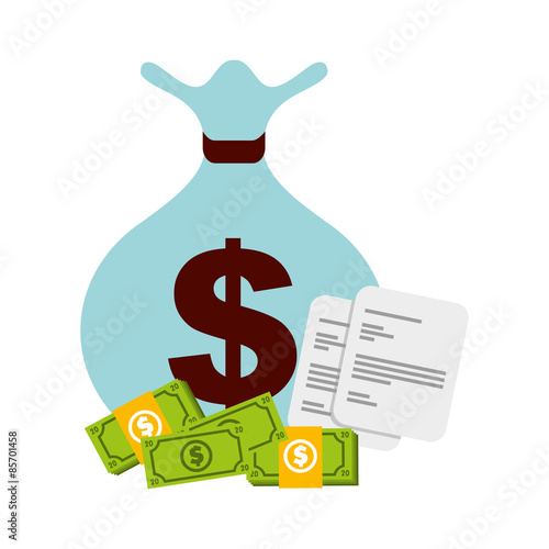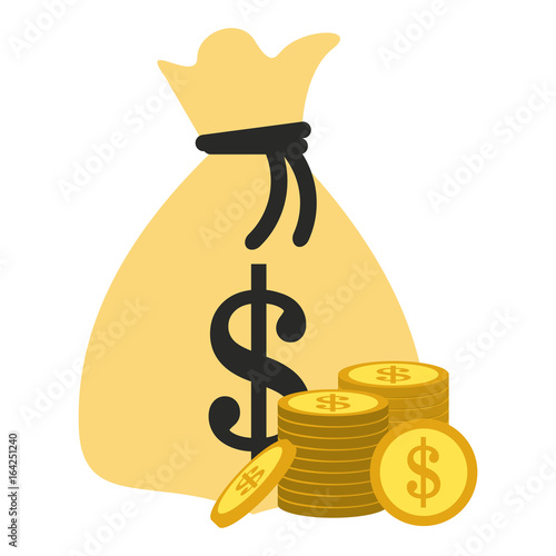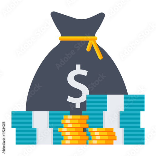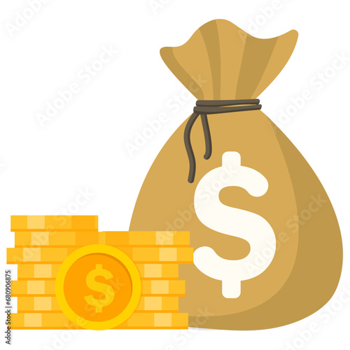 Money bag and dollar cash coin stack icon. Vector finance sack isolated on white background. Moneybag with treasure jackpot