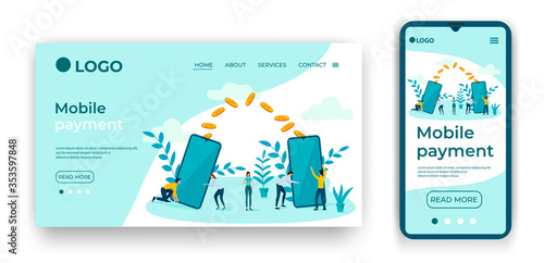 Money transaction vector website template, web page and landing page design for website and mobile site development. Payment online, money transfer mobile app concepts.
