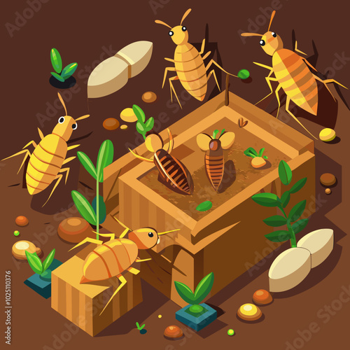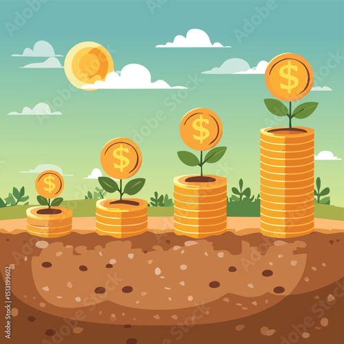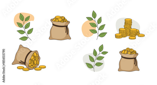 Money tree, gold bars, money bags, arrow chart, flat vector isometric illustration. Investment in gold concept.