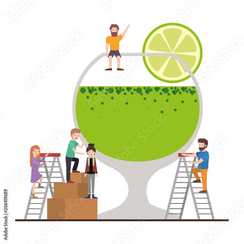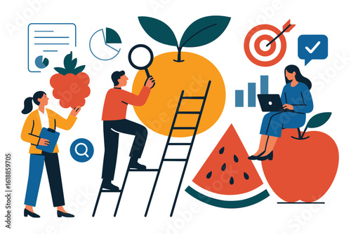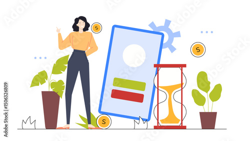 Business people harvesting money while picking dollar coins and banknotes from money tree, vector flat illustration. Financial growth, profit, business success, wealth concept.