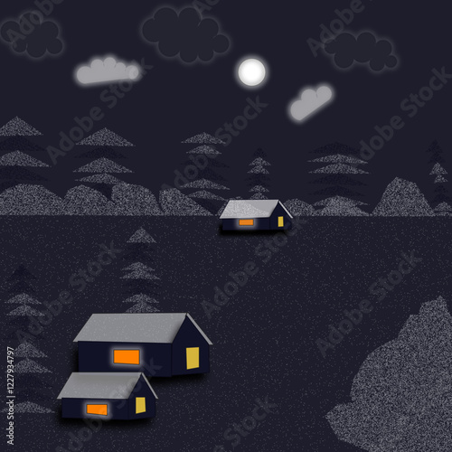 Vector illustration of astronauts walking on the Moon surface with aliens, working at lunar roving vehicle, space base and space exploration equipment. Flat style design.