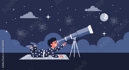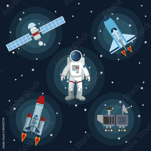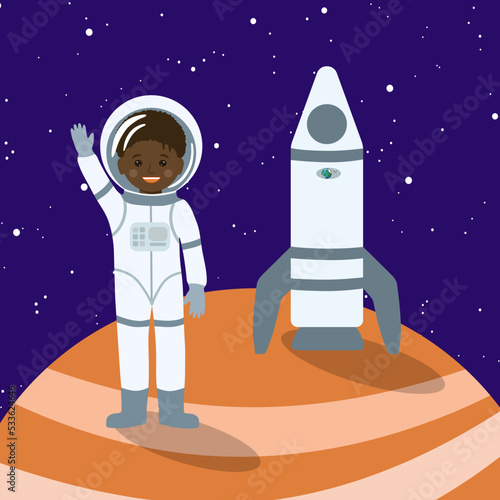 Vector illustration of astronaut on the Moon surface. Moon exploration concept design element in flat style.