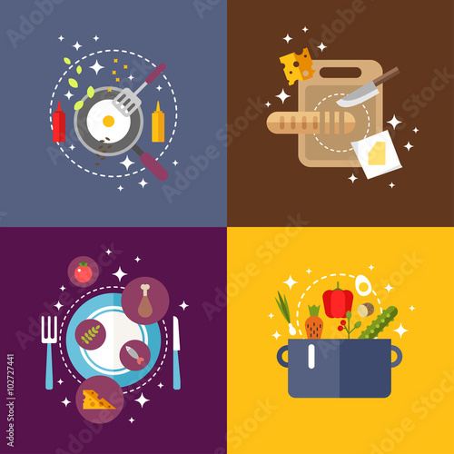 Morning coffee in cafe concept vector illustration. People at a table in a restaurant drink tea. Friends meeting for breakfast. Woman sit on a floor and drink hot tea. Table with tea pot and cups.