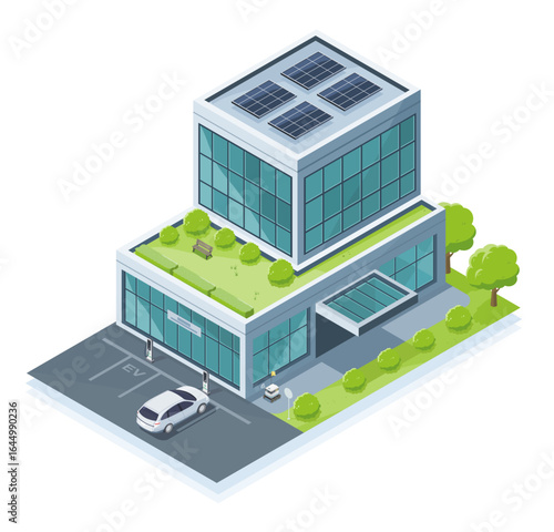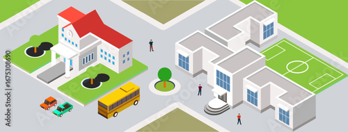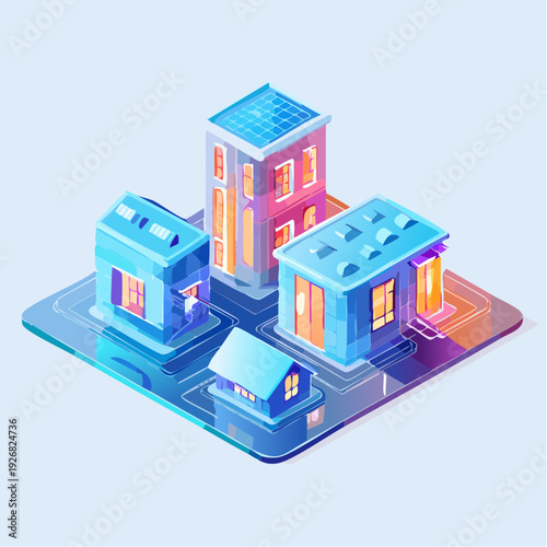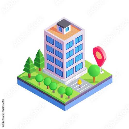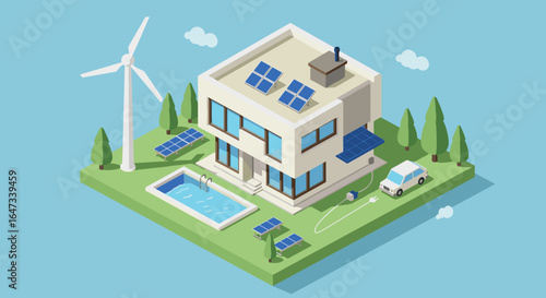 Vector isometric house building standing on dollar banknotes, calculator, stack of coins, percentage sign. Mortgage interest rates concept.