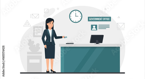 Vector illustration of woman standing next to stove in kitchen. Mother flat style design element.