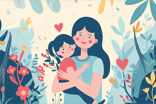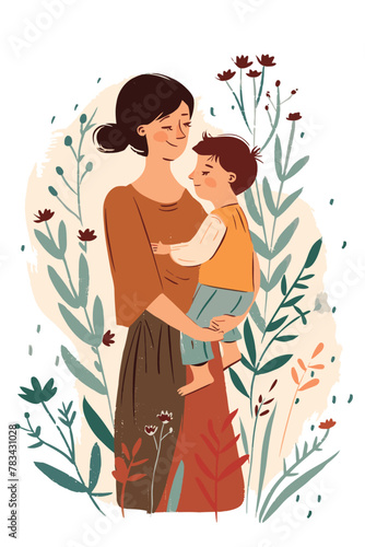 Happy mother playing with her baby, flat vector illustration. Mom and kid spending time together. Parent child relationship, happy motherhood and parenting.