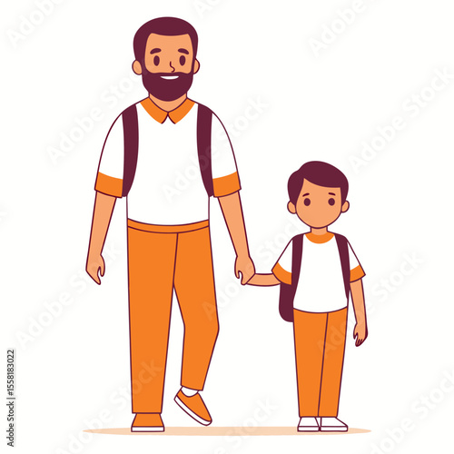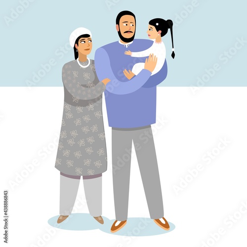 Mother wearing protective mask walking with daughter vector icon isolated on white background. Viral pandemic concept.