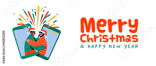 Coffee quotes hand drawn lettering typography with happy couples having coffee in the morning, vector flat illustration isolated on white background. Motivational coffee sayings.