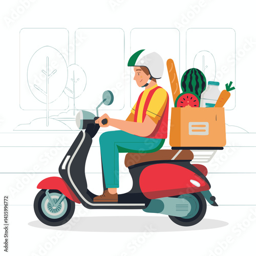 Motorcycle accident, flat vector illustration. Motorcyclist struck pedestrian on crosswalk. Road traffic accident.