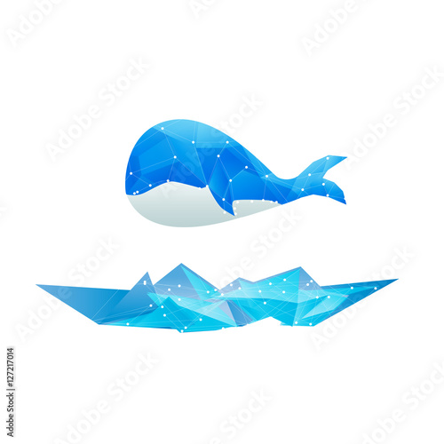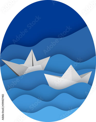 Mountains papercut background 3d nature vector. Art style forest landscape illustration in craft style. Layered origami spring or summer design with grass, sun and cloud. Travel, tourism and adventure