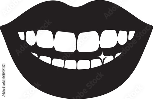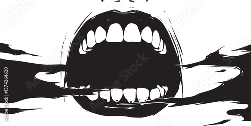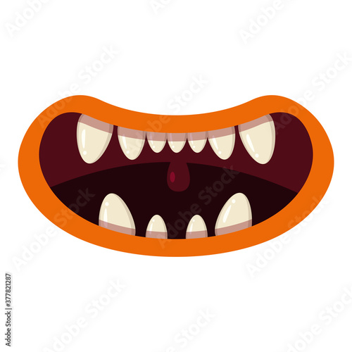 Mouth smile with teeth vector. Scary halloween monster or joker character expression with creepy toothy grin isolated on white background